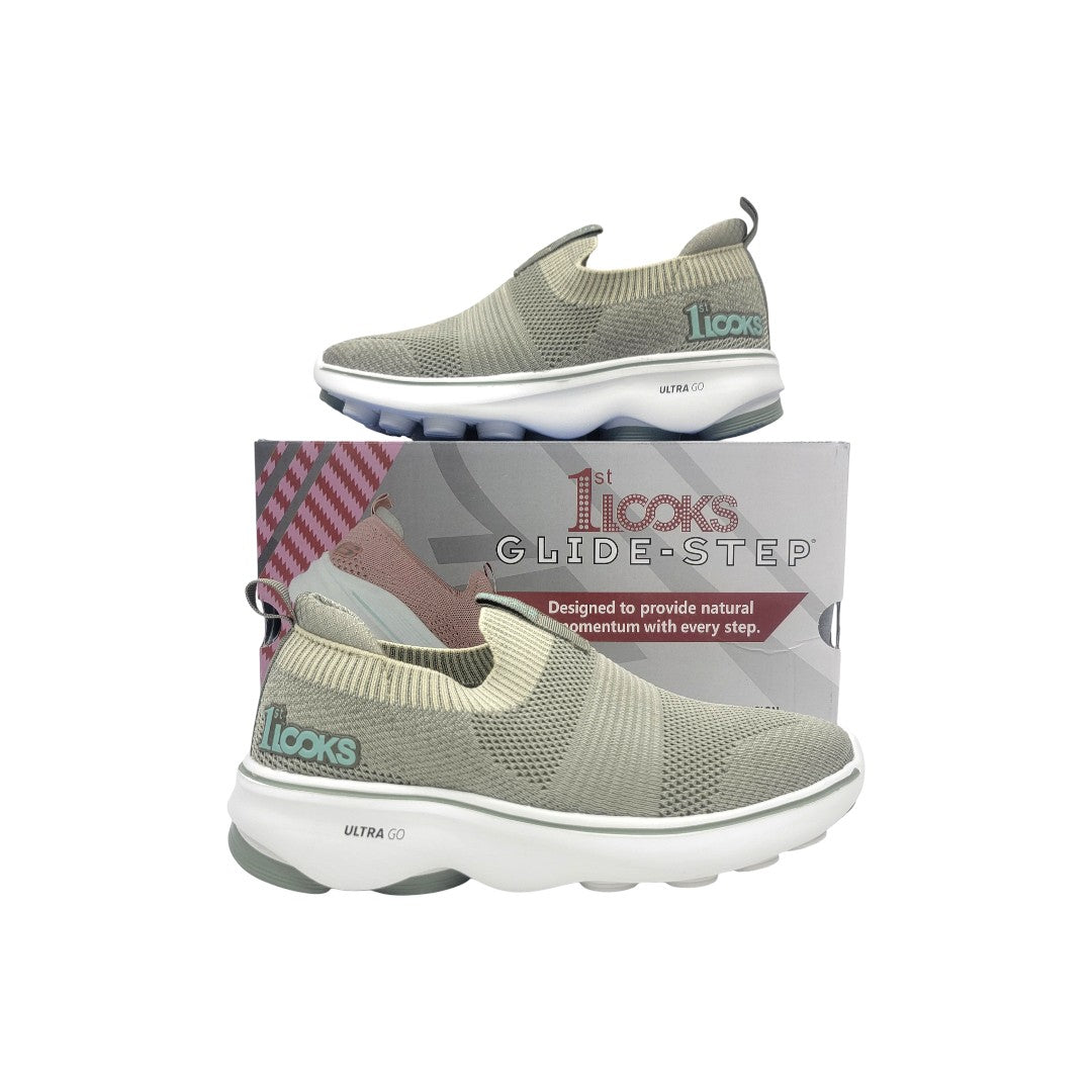 Enjoy all-day comfort and effortless style with the 1st Look Max Cushion Slip-On in a subtle grey and green colorway. Perfect for those who want a lightweight, breathable shoe that’s easy to slip on and go.