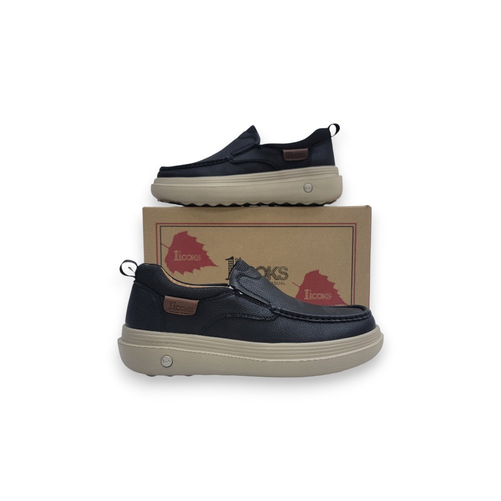 Step into everyday comfort and effortless style with the 1st Look Slip-On Sneaker. Designed for those who value both convenience and fashion, this sneaker combines a sleek black upper with a versatile beige sole for a contemporary look that suits any casual occasion.
