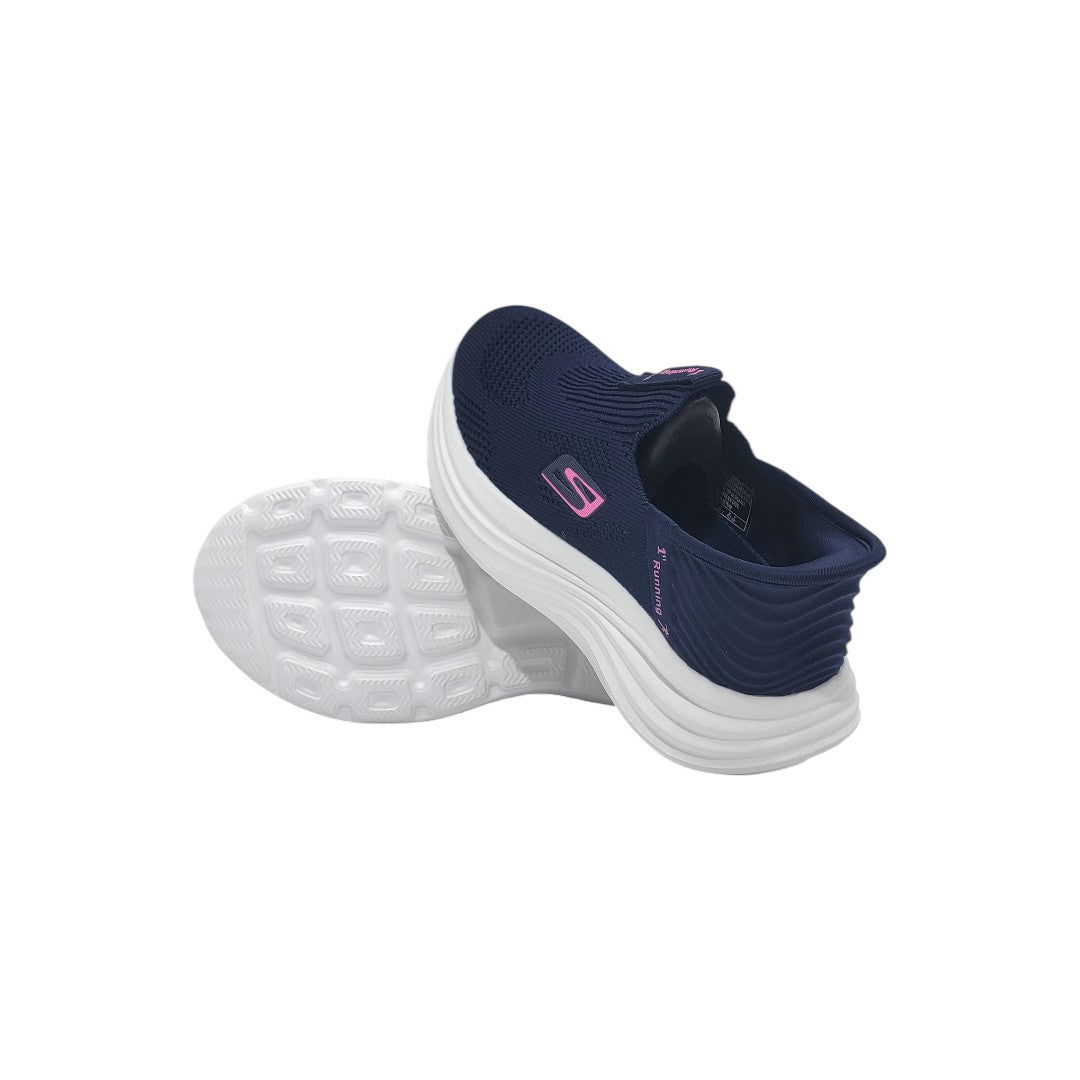 Experience unbeatable comfort and sporty elegance with the 1st Running Navy Skechers. Designed for women who are always on the move, these slip-on sneakers combine a sleek look with advanced comfort technology. The deep navy knit upper offers a versatile style that transitions effortlessly from workouts to casual outings.