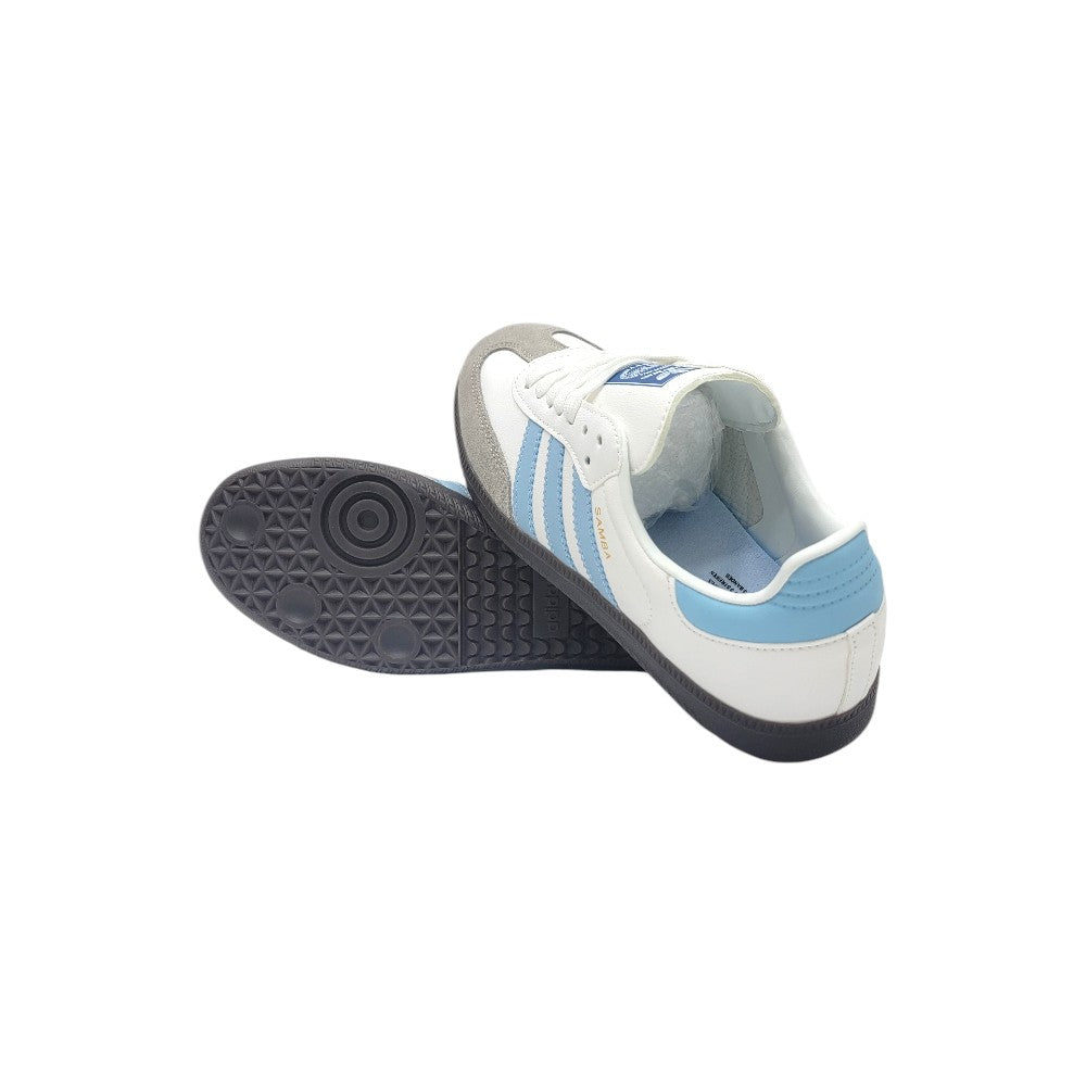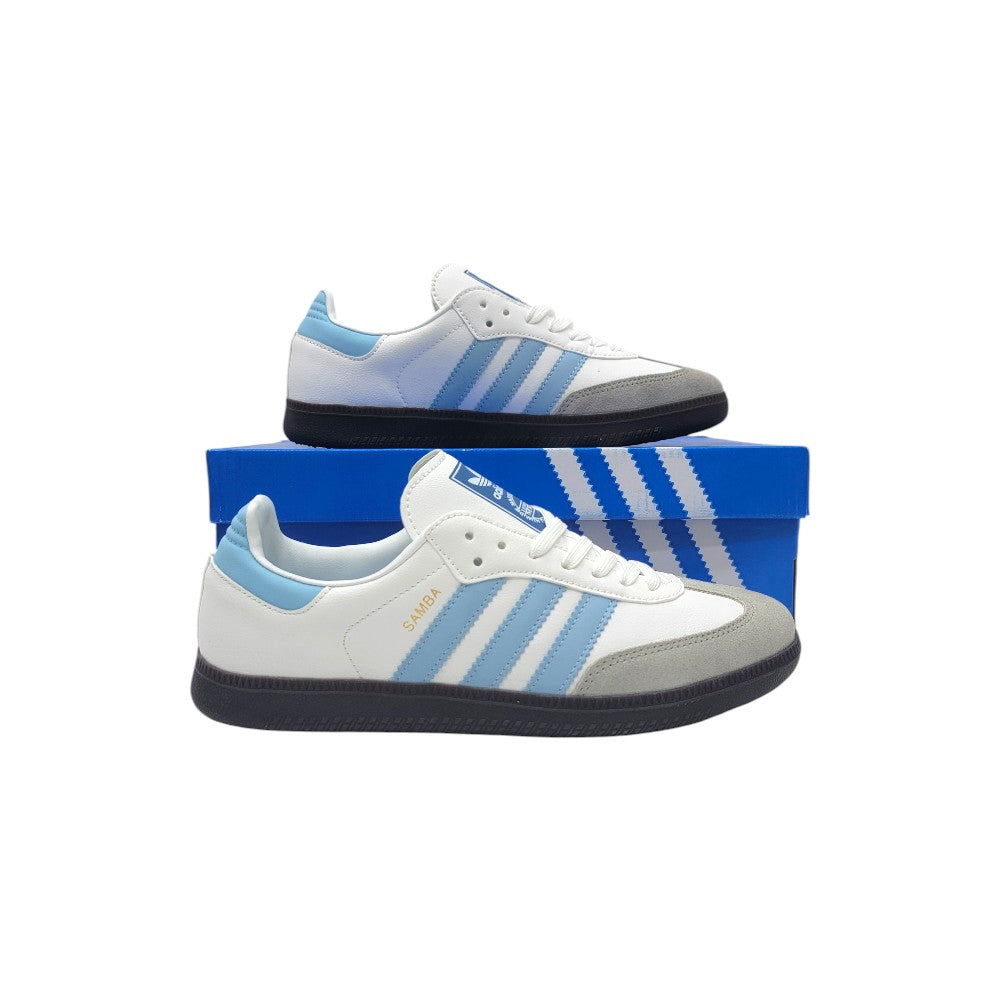 Step into timeless style with the iconic Adidas Samba OG, now in a fresh White, Sky Blue, and Grey colorway. Originally designed for indoor soccer, this classic sneaker has become a staple in streetwear fashion.