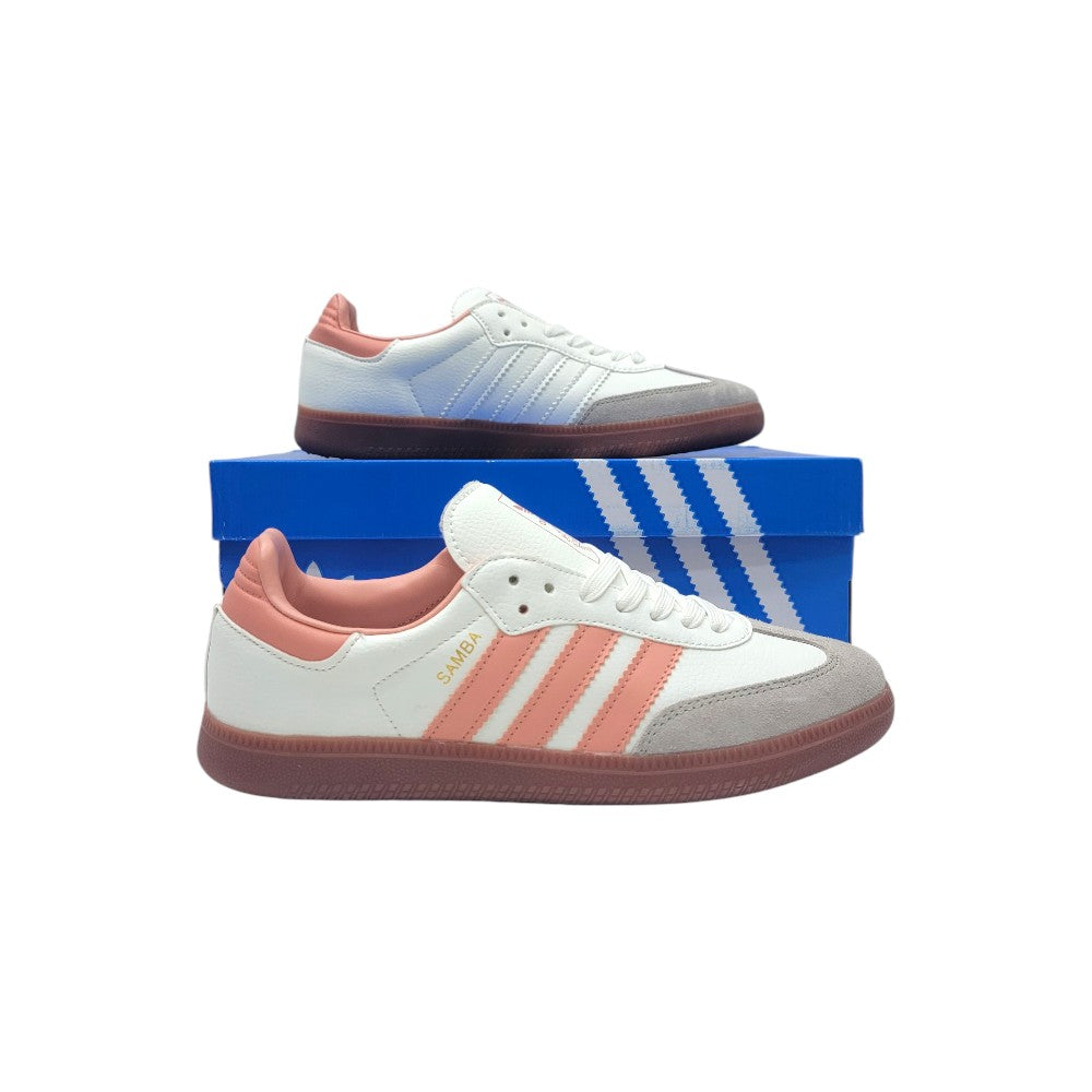 Add a fresh pop of color to your rotation with the Adidas Samba OG in an eye-catching White, Peeche, and Soft Grey palette. This version of the iconic silhouette brings a playful yet elegant twist to a streetwear classic, perfect for casual outfits or standout everyday looks.