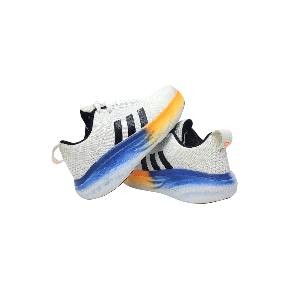 Bring energy to every step with the Adidas Aero Glow Runner – White/Blue. Featuring a clean white upper with bold black stripes, this shoe pairs minimalist design with a vibrant midsole that blends blue and orange for a dynamic, eye-catching look.