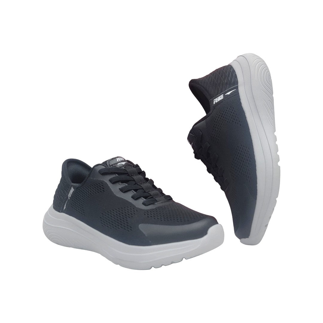 Elevate your everyday steps with the Feike Black Grey Women Joggers — the perfect blend of comfort, durability, and modern style. Designed for active women on the go, these joggers feature a sleek black mesh upper with grey detailing, offering breathability and lightweight support. The cushioned white outsole ensures all-day comfort whether you're jogging, walking, or running errands.