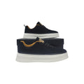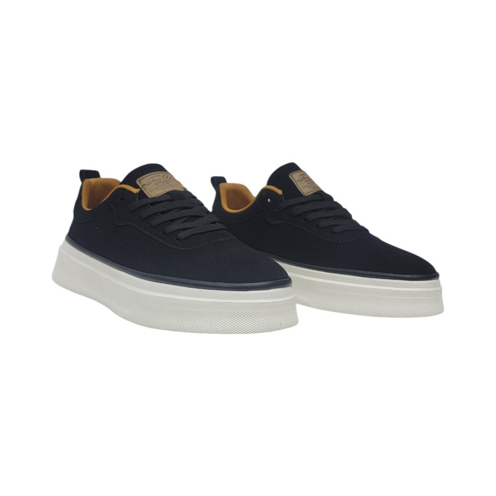 Upgrade your everyday style with this sleek black casual sneaker featuring a modern design and bold chunky white sole that delivers both comfort and style. The tan lining and tongue tag add a classy and unique touch to the shoe.