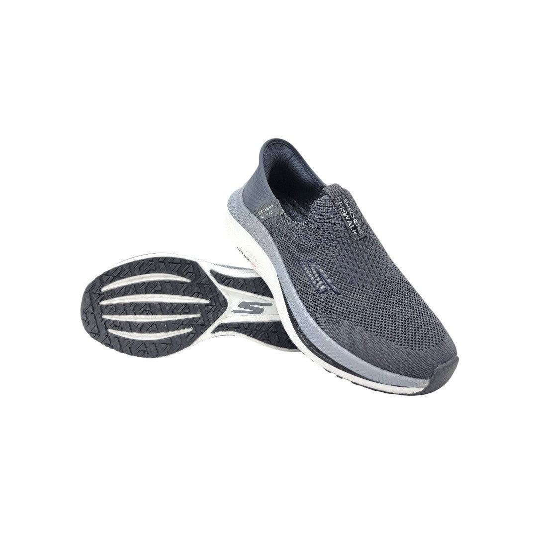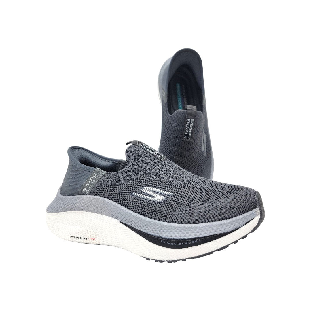 Elevate your everyday comfort with the Skechers Hyper Burst Pro – Grey/Black. Designed for performance and ease, this slip-on sneaker combines sleek design with high-end running technology. The dual-tone grey knit upper with black detailing gives a modern, athletic look that fits effortlessly into your active lifestyle.