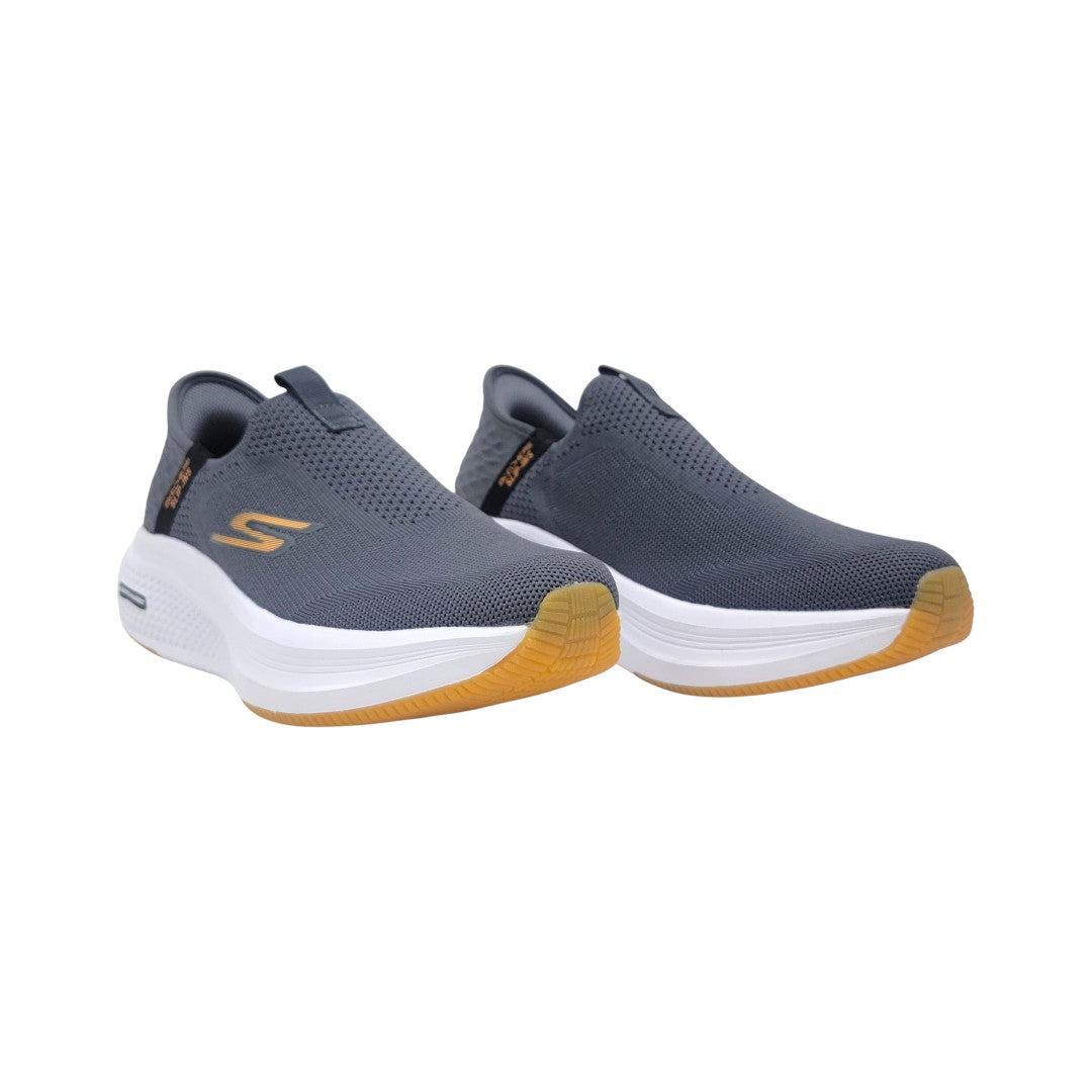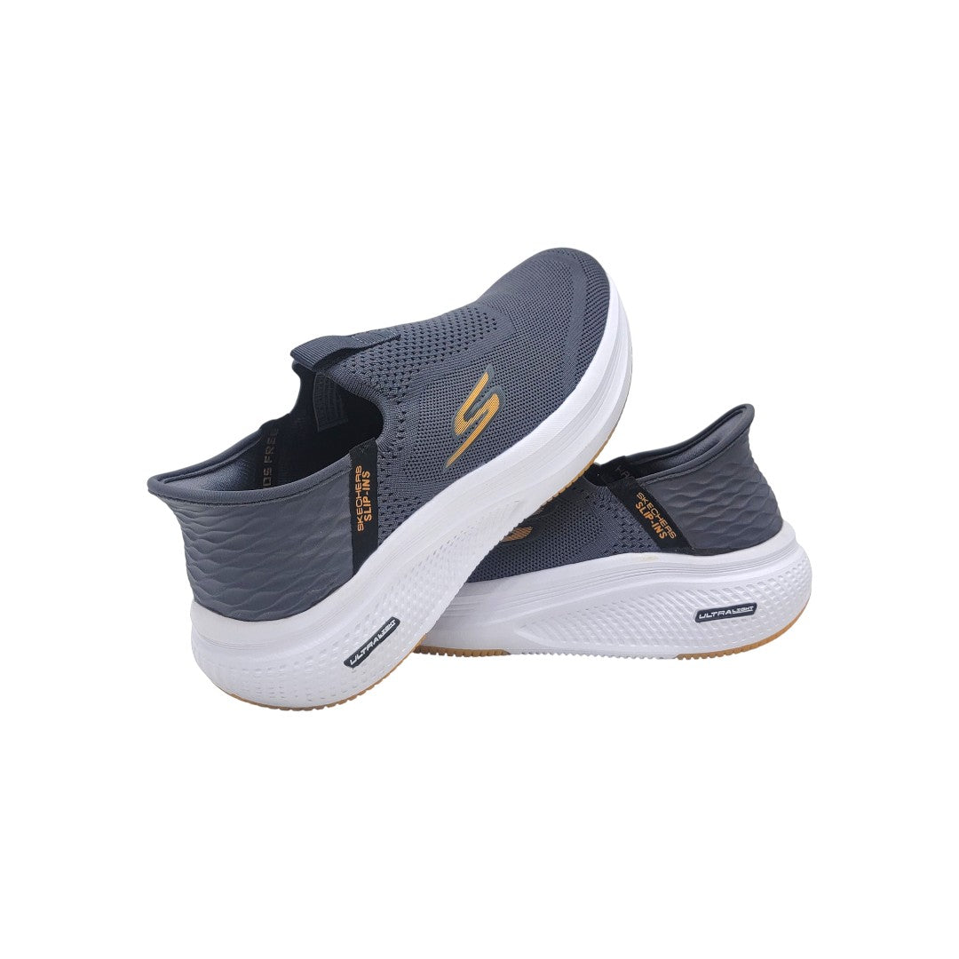 Stay light, stay comfortable with the Skechers Ultra Light Slip-On – Dark Gray/Black. Featuring a breathable dark gray mesh upper and a contrasting white midsole, this shoe offers all-day comfort with a sleek, modern look.
