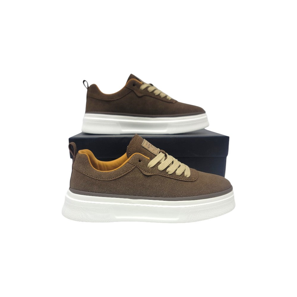 Step up your casual game with this brown lace-up sneaker, designed with a stylish contrast sole and built for all-day wear. Featuring a rich brown textured upper, beige laces, and a chunky white sole, this shoe effortlessly balances streetwear style with day-to-day comfort.
